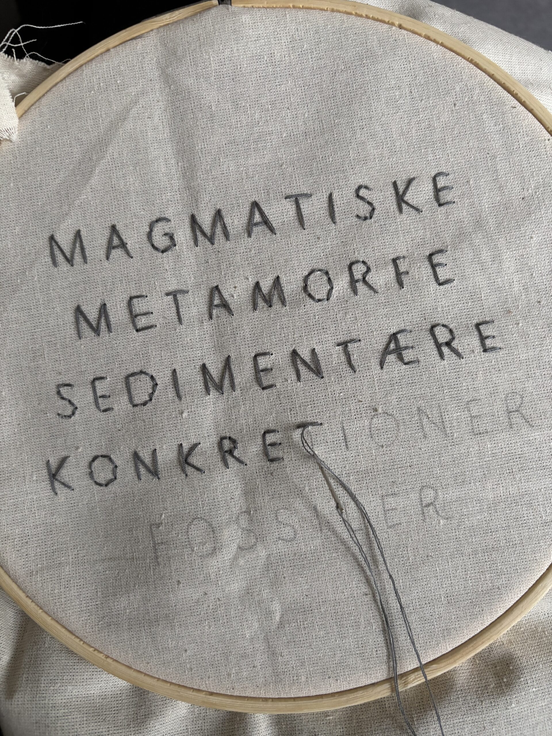 STOF & STEN, #1: definition på sten broderet på ubleget bomuldslærred